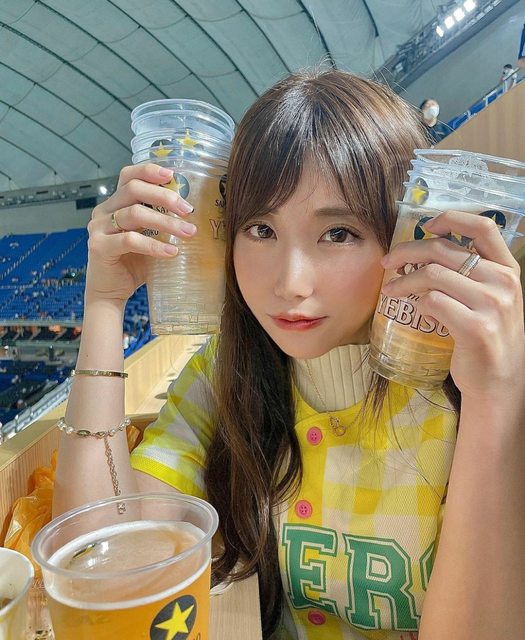 曾在甲子園當啤酒妹打工,另外開設副帳sugimodepon紀錄阪神現場觀戰紀錄。