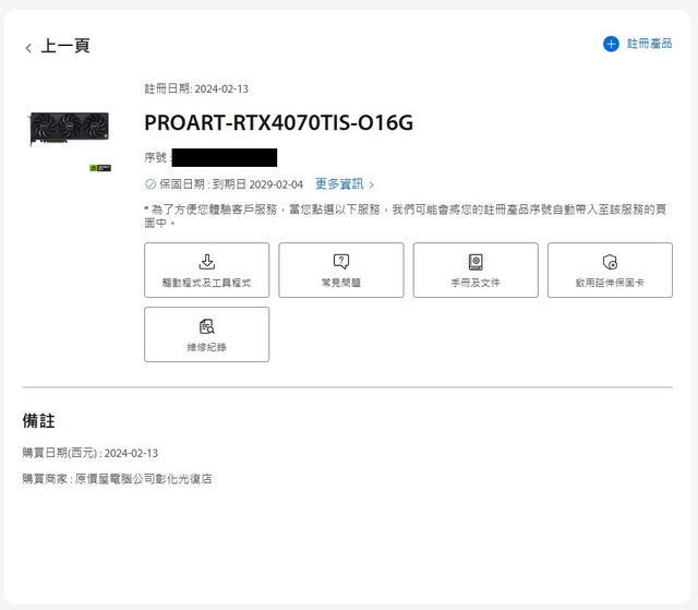 ◎硬體型號: ASUS ProArt 4070 Ti SUPER OC 16GB