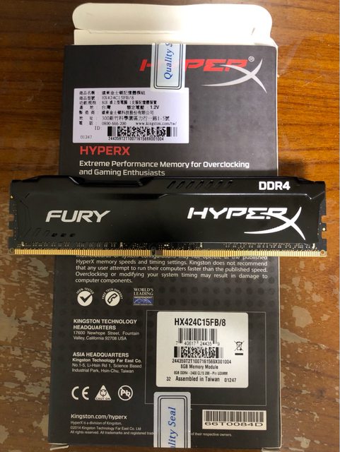 2. 金士頓 HyperX FURY DDR4 HX424C15FB / 8G