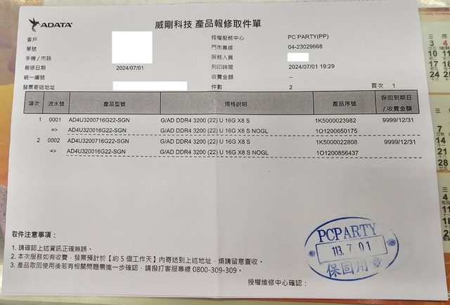 1.購於2021年,原記憶體故障,2024/7/1門市送修直接換新,保固如圖(終身),有自行加