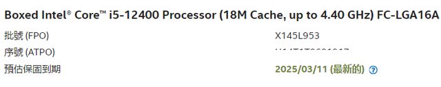 CPU保固至2025/03/11 主機板保固至2027/01/02