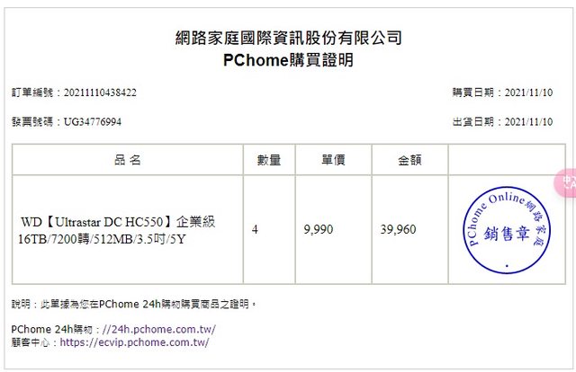 標題[賣/台北/皆可] WD HC550 16TB 捷元貨