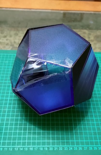 ◎附球形塑膠盒,不過該盒子曾摔到,因而側面有破損,目前用透明膠帶黏起來,從正面