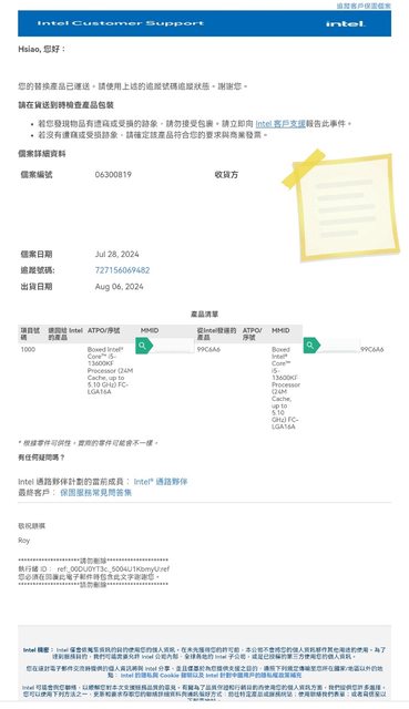 3.使用狀況:於今日2024/8/12 RMA回來,僅檢查序號正確