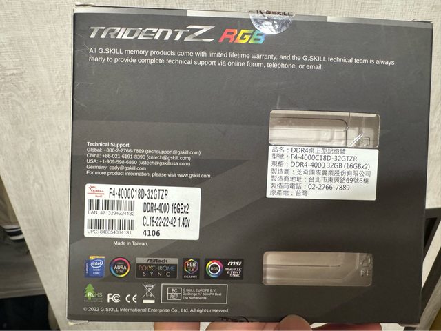 3. 2024/04購入,原在ITX備機使用,ITX更新成DDR5後換下,盒裝齊全終保。