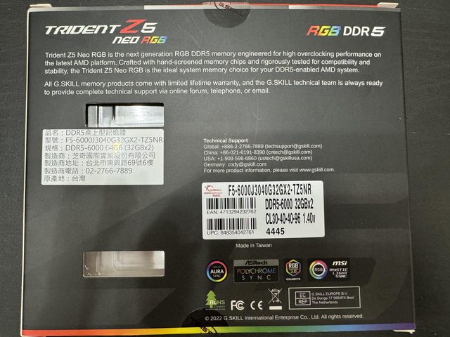 ◎硬體型號: 芝奇 焰鋒戟32GB*2 DDR5 6000 CL30
