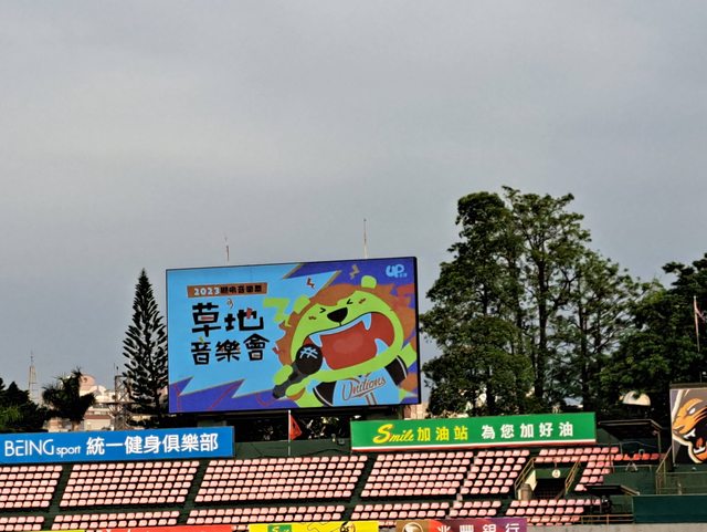 台南球場開始擺草地音樂會的關東旗,