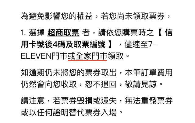補充一下,我的信件裡清楚提到可以到全家取票