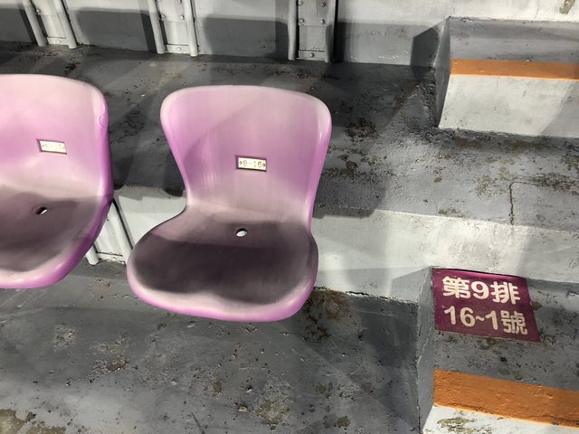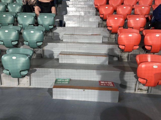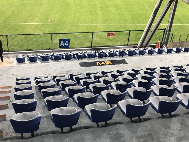 雖然看起來”揮巴咪貓“(註),但球場內座位區域配合著地上標示底色
