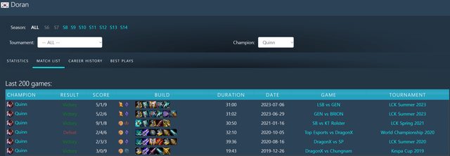 Doran葵恩勝率: