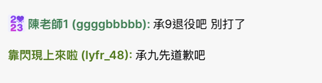 推 eereer12325 : 成九出來道歉 07/21 19:04