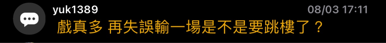 → vincentliujj: 老哥 手骨折算不算自殘 我意思不要過度解讀人家有憂 08/03 17:07