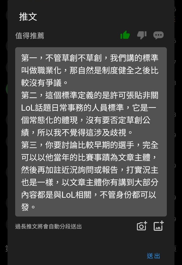 3.發文者自承實質上在討論其他非關LOL板主題的文