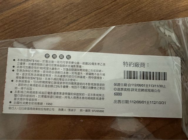 售新版日新電影票 有19張 一張170