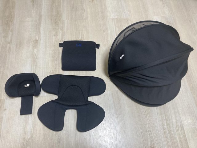 配件齊全,遮陽篷、新生兒座墊皆為全新、未使用過