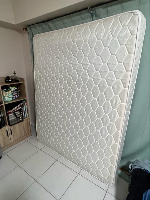 「售」標準雙人床底版+床頭櫃+床墊