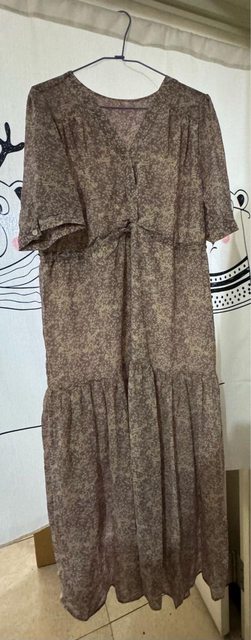 物品說明:全新未穿過,雪紡材質,165/60,肩寬38cm,穿起來寬鬆,裙長至腳踝上方