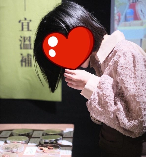 由老婆當模特兒,這邊是以傳統的中藥行抓藥帖場景,讓人體驗藥材