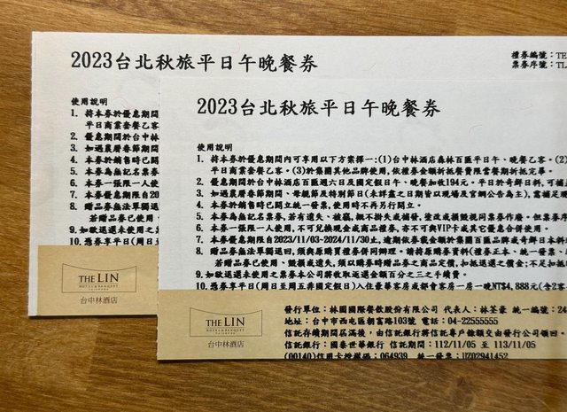 商品名稱:林酒店平日午晚餐券