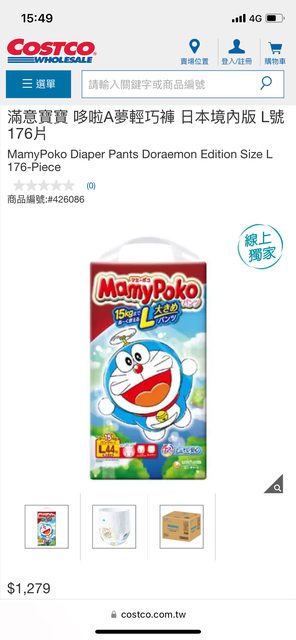 Costco 售價 一箱(176片)1279元
