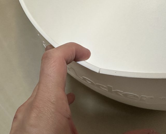 我用單手提起結果中間有一點裂縫(如照片),盆子不彎曲的話看不太出來