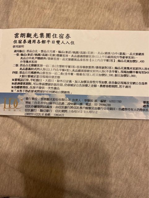 標題[交易] 北屯/雲朗集團禮券 面額2500*2