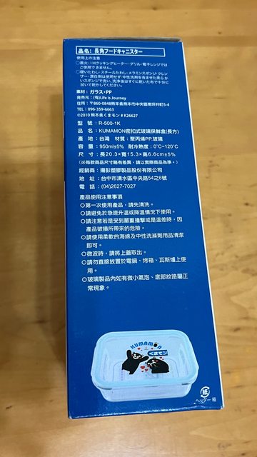 R-500-1K KUMAMON密扣式玻璃保鮮盒(長方)(950ml)