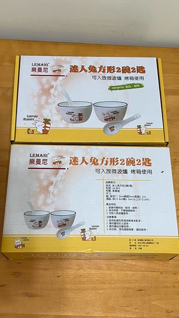 LEMANI 樂曼尼 迷人兔方形碗 2碗2匙組
