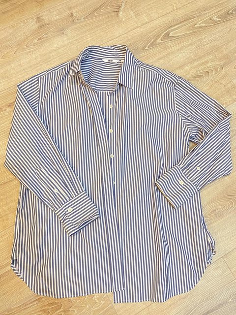 欲售物品: 1.uniqlo 條紋棉質寬版襯衫 藍L(女款)/售300元