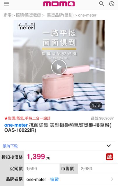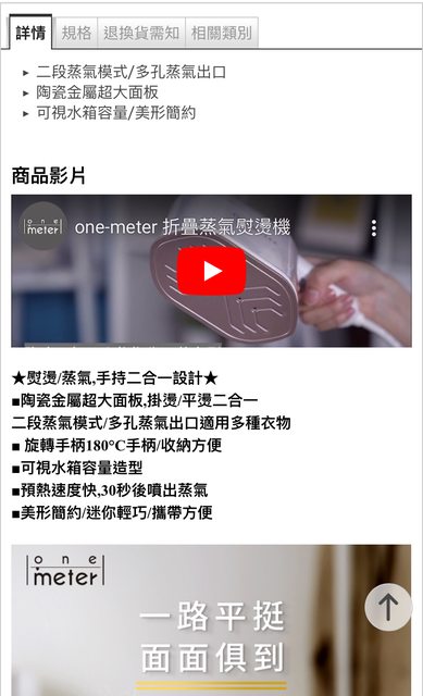 上述皆九成新以上 很少穿洗好掛吊 衣況良好 5.One meter 摺疊蒸汽熨燙機 全新 但收到時外紙盒有損壞 家中已有一台 用不到出售 輕巧方便/售600元