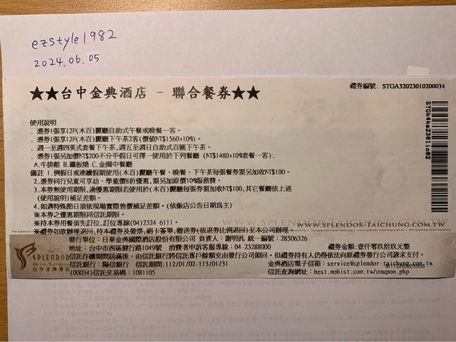 標題[交易] 梧棲/金典飯店聯合餐券 1張