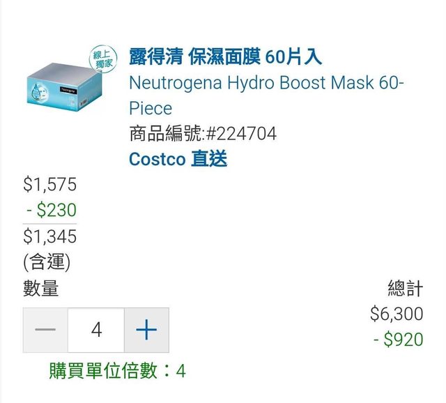 4. (全新)露得清保濕面膜 60入 NT$1345元