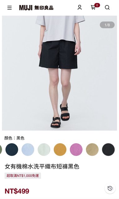 5.muji 女有機棉水洗平織布短褲 黑L/售200元