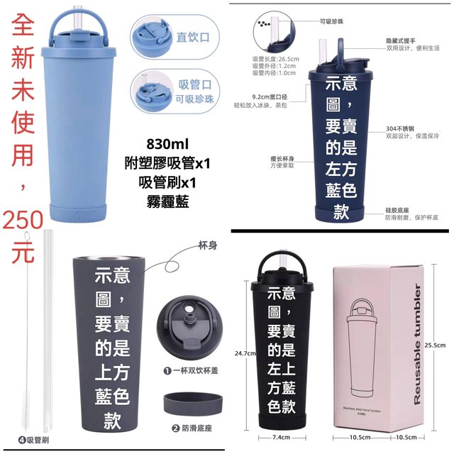 5. 250元一個,環保杯 霧霾藍色 830ml,全新。