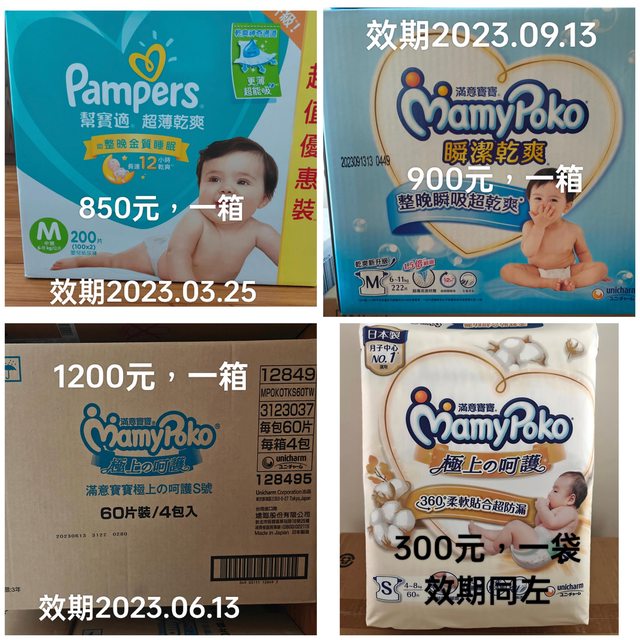 1. 850元一箱,幫寶適 黏貼型 M 200片,共一箱不拆售