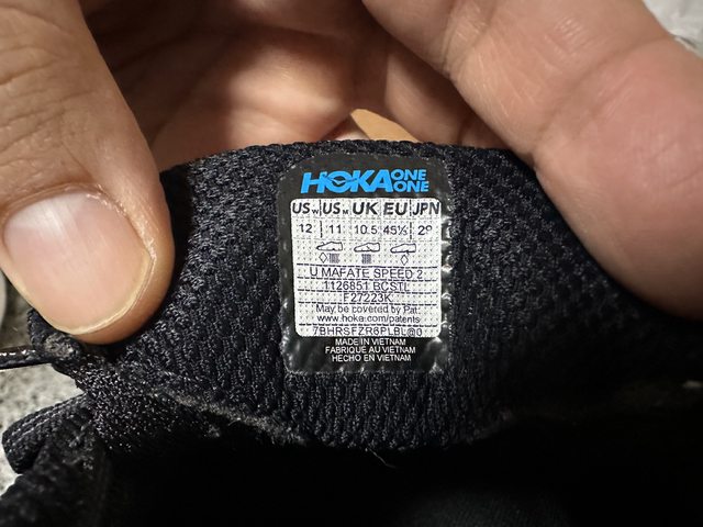 [交易] 物品:二手極新 HOKA Mafate Speed 2 US:11(建議拿大半號) 購自蝦皮購物,6/20到貨,6/21僅穿一天。但因為看到更喜歡的顏色, 所以想趁還很新的時候趕快脫手,去買新色。鞋子已清潔完畢。 網頁介紹: