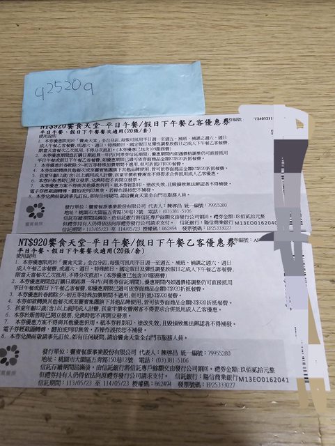 標題[交易] 東海/饗食天堂平日午餐餐券2張 售出