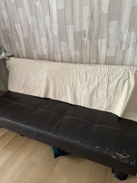 沙發床本身是很乾淨的,就只是被這隻小朋友抓成這樣,套個沙發套就能正常使用。