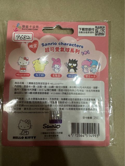 物品說明:全新未使用,台中市政府贈送 物品名稱:三麗歐造型氣球悠遊卡 物品實照: