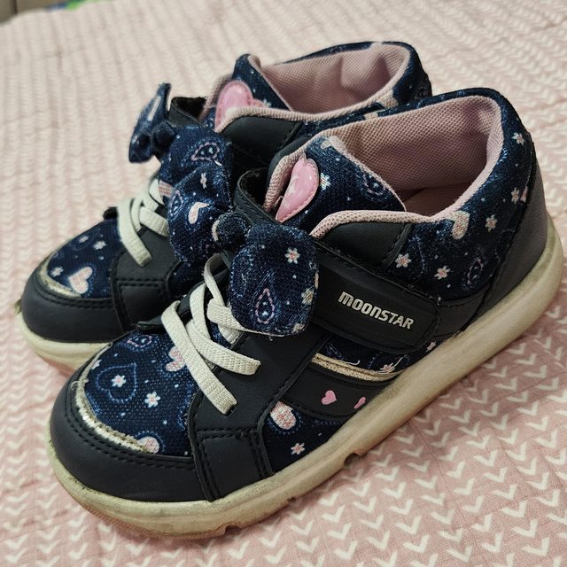 物品B/價格 moonstar深藍愛心鞋18cm 七成新,售100 物品B實照
