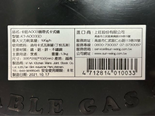 物品名稱:卡旺卡式爐