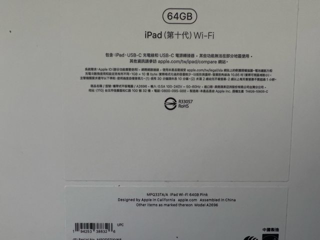 商品名: iPad 10th wifi 64g 粉