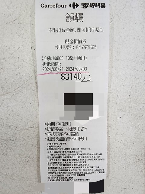 商品名稱:家樂福現金折價券 面額3140元