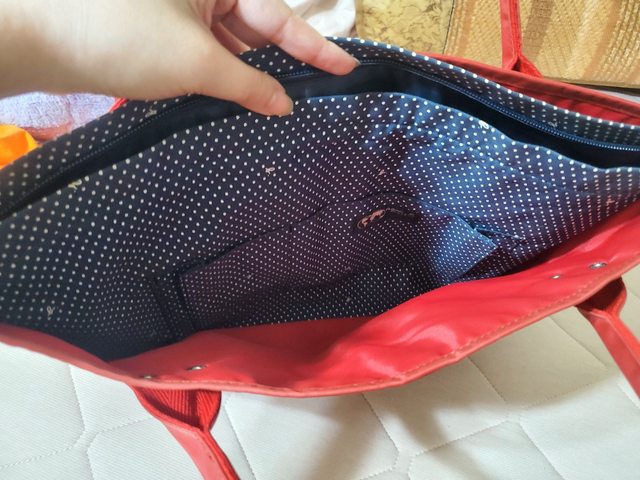 *西區公益三角公園可面交 *或是付款後 北區大樓管理室自取 *可開全家好賣+/711賣貨便 免運 *意者站內信留Line ID方便聯絡 1. Agnes b經典三層水餃包(紅色大托特) 一直都裝在原廠防塵袋,無紙袋 原價6千多,售3千