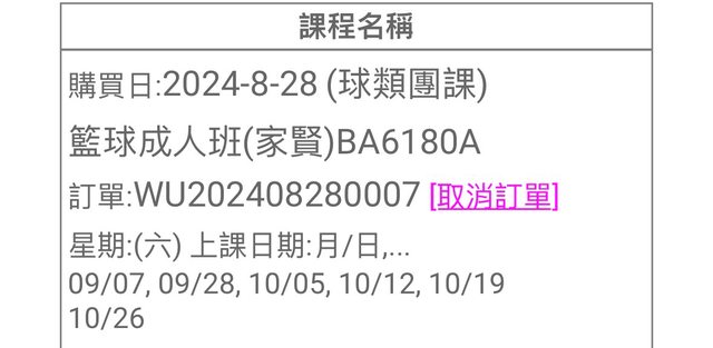 : 活動名稱:BA6180 成人班籃球課(家賢)