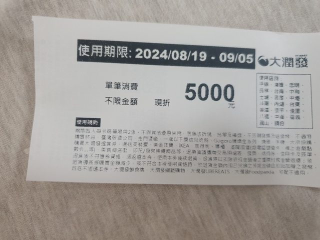 大潤發現金抵用券5000元,便宜賣4500元。
