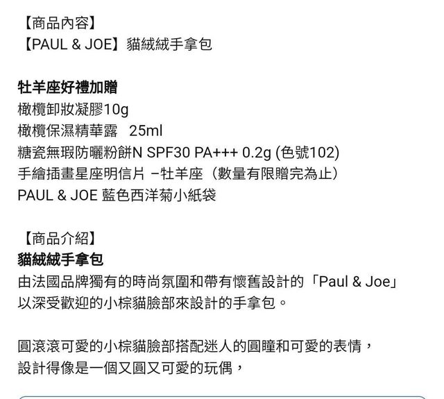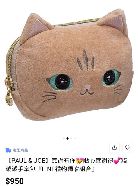 2. PAUL &JOE貓絨絨手拿包(化妝包)&旅行組 $550 全新未使用,僅此次拿出來拍細節照 含Logo紙袋/手拿包的袋子從未拆過 因此部分照片取自官網