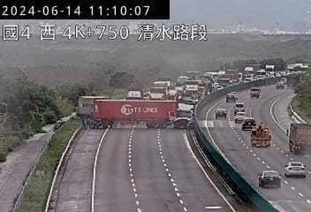 → jhtseng13: 下午走國三好像在台中前後有看到貨櫃車翻覆,四台吊車 06/14 16:27