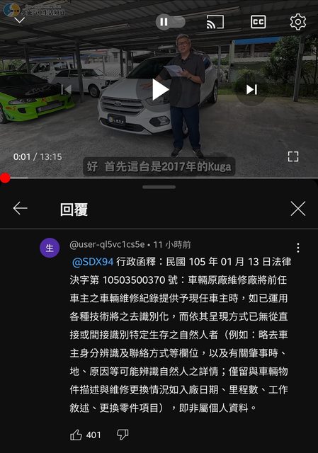 我看影片有人留言提供法務部函釋給各大車廠