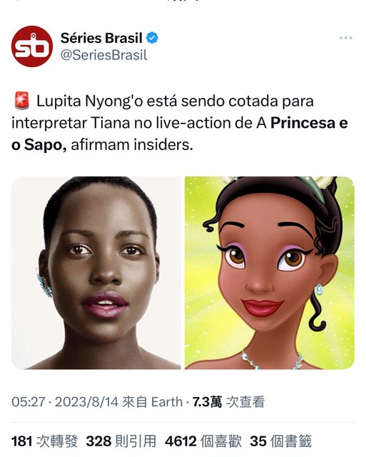 推 totomo168 : 完全不記得這故事是黑人公主了 08/14 15:19